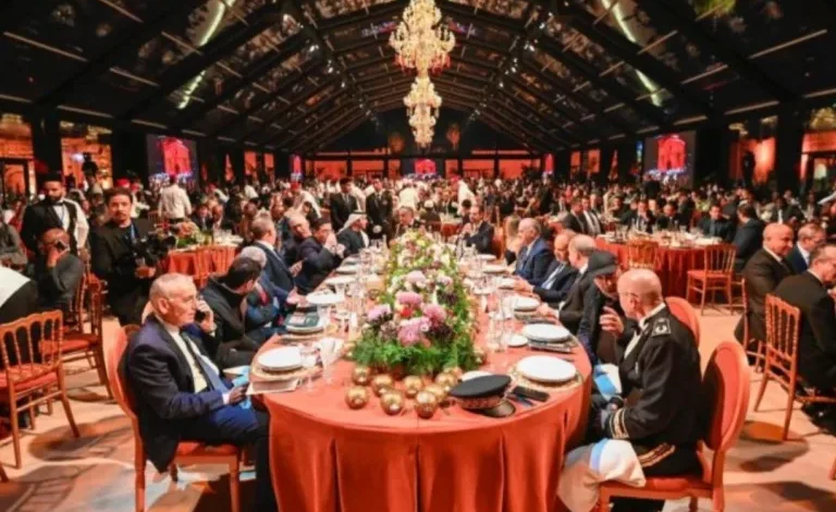 في أجواء احتفالية تنبض بالأصالة المغربية أقام المدير العام للأمن الوطني ولمراقبة التراب الوطني عبد اللطيف حموشي، مساء الأربعاء 26 نونبر مأدبة عشاء رسمية على شرف وفود الدول والمنظمات الدولية والإقليمية المشاركة في أشغال الجمعية العامة لمنظمة الشرطة الجنائية الدولية “الأنتربول” التي تحتضنها مدينة مراكش ما بين 24 و27 نونبر 2025واحتضن قصر البديع التاريخي هذا الحفل الباذخ حيث امتزج عبق التاريخ المغربي بكرم الضيافة ليصنع لوحة احتفالية مبهرة عكست غنى التراث الوطني وعمق الثقافة المغربية وسط إعجاب واسع من الحضور الذين استمتعوا بجمالية المكان وروح المناسبة وحضر مأدبة العشاء المدير العام للأمن الوطني ولمراقبة التراب الوطني عبد اللطيف حموشي ورئيس منظمة الأنتربول أحمد ناصر الريسي والأمين العام للمنظمة فالديسي أوركيزا إلى جانب أعضاء اللجنة التنفيذية للأنتربول وكذلك الأمين العام لمجلس وزراء الداخلية العرب محمد بن علي كومان كما شهد الحفل حضور المسؤولين البارزين عن الجانب المغربي من بينهم وزير الداخلية عبد الوافي لفتيت ووزير الشؤون الخارجية والتعاون الإفريقي والمغاربة المقيمين بالخارج ناصر بوريطة والوزير المنتدب المكلف بالميزانية فوزي لقجع وقائد الدرك الملكي الفريق أول محمد هرمو والمدير العام للدراسات والمستندات محمد ياسين المنصوري ووالي جهة مراكش آسفي خطيب الهبيل وبجانب كبار المسؤولين الأمنيين والوزراء عرفت المأدبة حضور أكثر من 1200 مشارك من مختلف الدول والمنظمات الدولية من بينهم المدير العام للشرطة الوطنية الإسبانية فرانسيسكو باردو بيكيريس ووزراء الداخلية وكبار قادة الشرطة والأمن بدول الأنتربول وتخللت الأمسية عروض فنية مغربية راقية قدمتها 16 فرقة فلكلورية جسدت تنوع الإيقاعات والألوان الموسيقية من شمال المملكة إلى جنوبها في عرض فني متكامل أبرز غنى التراث الثقافي المغربي وروحه المتعددة